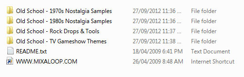 Over 550mb of old school vocal samples, sound bytes, tv & gameshow themes & rock drops.